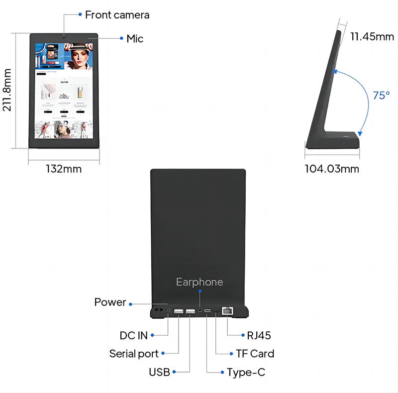 Nouvelle tablette Android 11 OEM de 8 pouces en forme de L avec processeur RK3568, 16 Go de RAM, Wi-Fi, écran tactile vertical pour usage professionnel