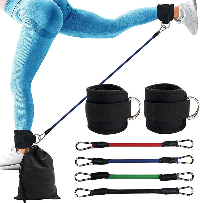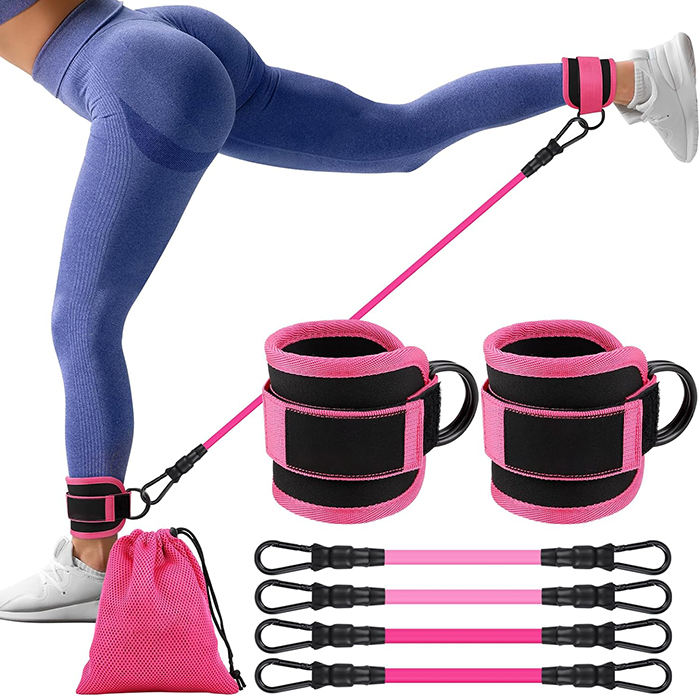 Nouveau OEM Réglable Unisexe Hanche Jambe Exercice Latex Résistance Tube Bandes Durable En Métal D Anneau Gym Cheville Sangles