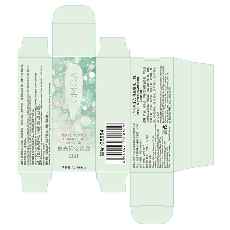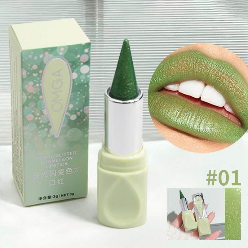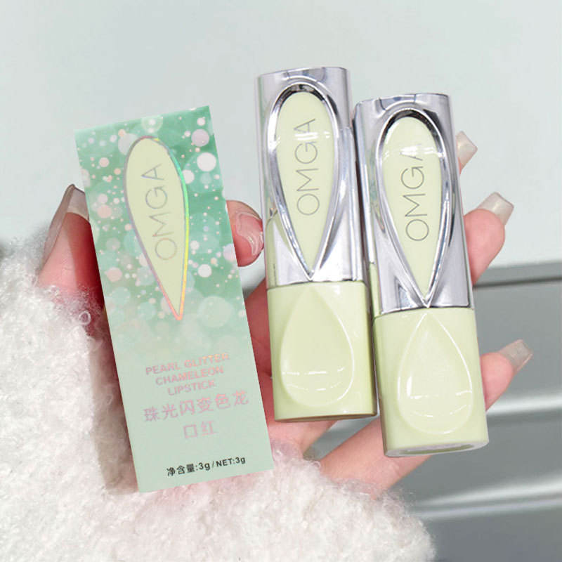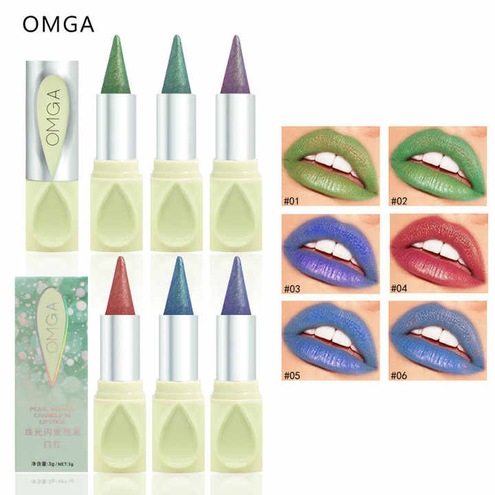 Nouveau OMGA Perle Durable Haute Couleur Paillettes Rouge À Lèvres Étanche Or Paillettes Brillant Minéral Facile à Couleur Rouge À Lèvres