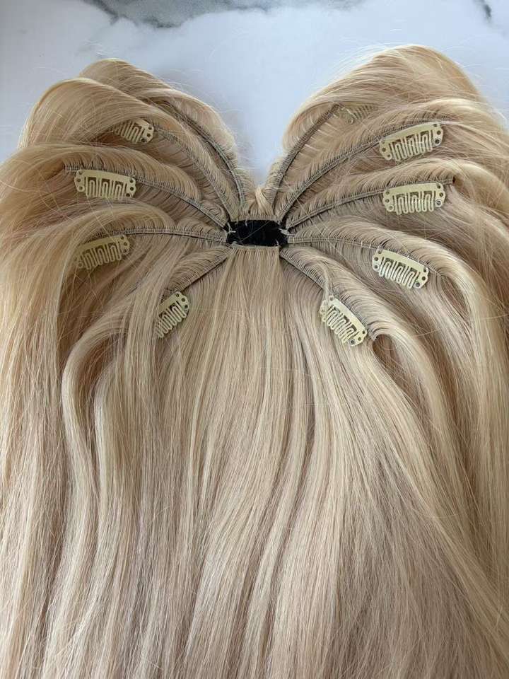 Matériau en cheveux humains: Fabriqué à partir de cheveux humains, garantissant un aspect et une sensation naturels qui s'intègrent parfaitement avec les cheveux de l'utilisateur.