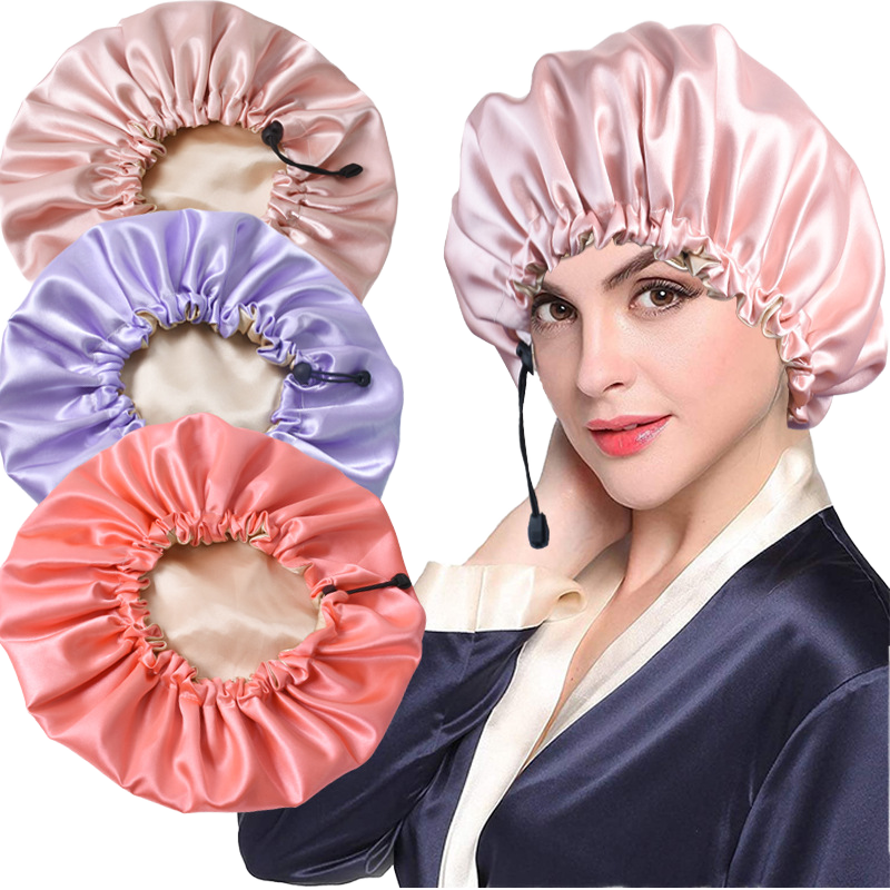 Nouveaux Bonnets Originaux Double Couche en Satin Soyeux pour Cheveux Naturels et Bouclés de Haute Qualité