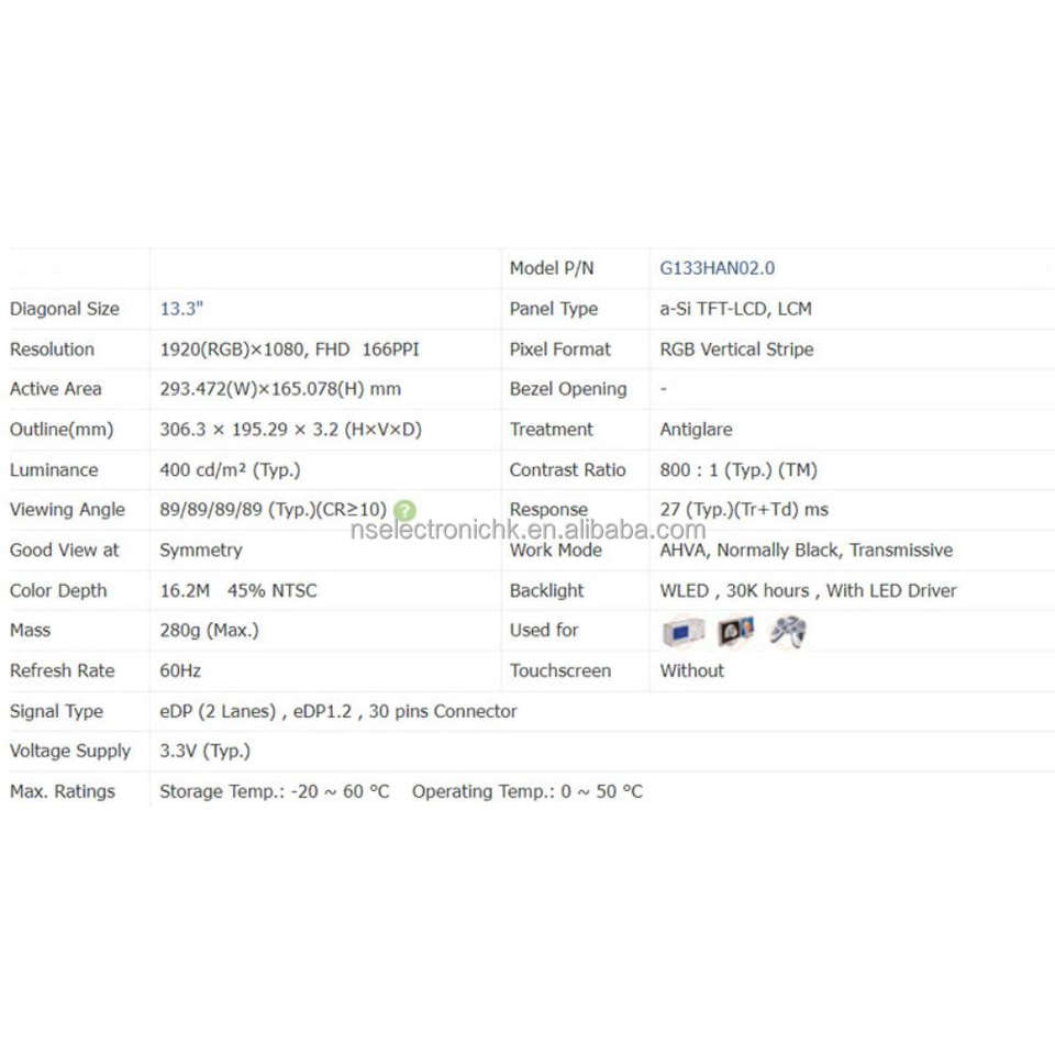 Numéro de modèle: G133HAN02.0