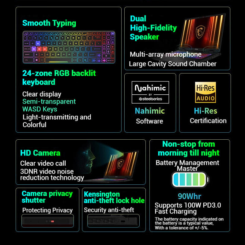 Ordinateur portable de jeu Pulse 17, 17,3 pouces QHD 240 Hz, AMD Ryzen AI9 HX370 12 cœurs, 16 Go de RAM, SSD, RTX5070, rétroéclairage RVB, clavier US, Windows 11