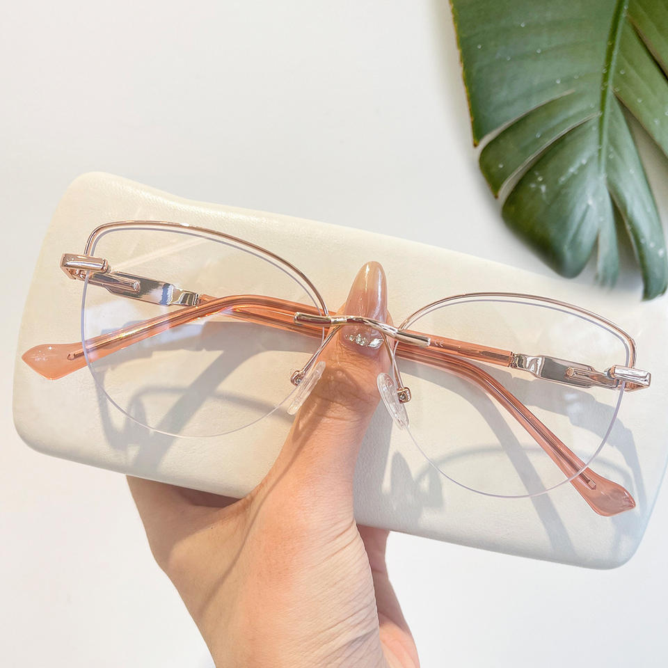 Nouvelles lunettes pour femmes à monture demi-cerclée ovale, verres plats, anti-lumière bleue, lunettes optiques pour myopie, monture en métal, lunettes de prescription pour femmes