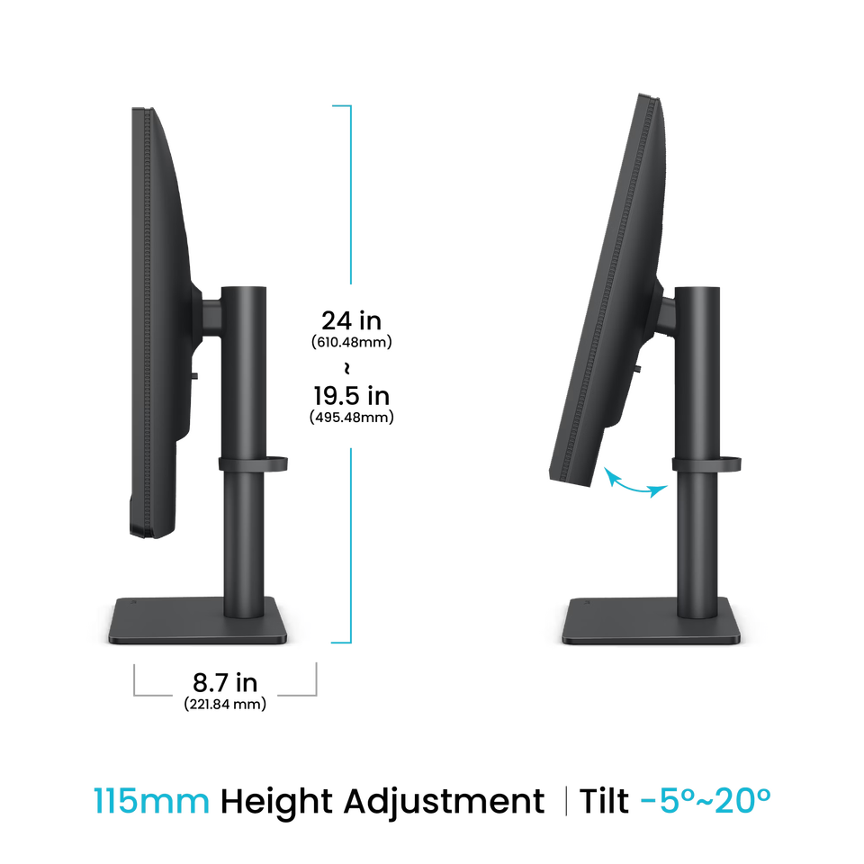 Ajustement:Inclinaison : -5°- 20°;Pivotement : 15°/ 15°;Pivot : 90°;Hauteur:115 mm