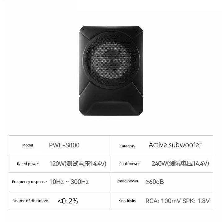 Nouveau PWE-S800 Auto Active Bass Double Bobine Vocale 8 pouces 240W Haut-parleur de Siège Ultra-fin Haute Puissance