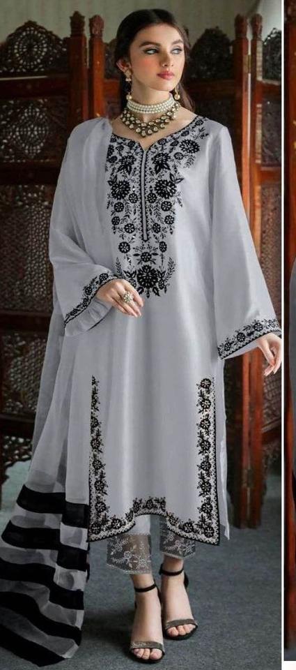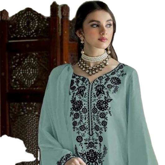 Nouvelle Georgette lourde pakistanaise avec broderie Kurtis avec coton extensible Pent et Organza Designer Print Dupatta