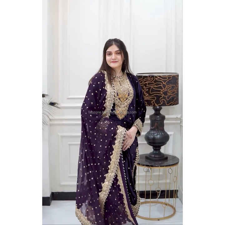 New Party Wear Viscose Velvet Designer Look Top-Dupatta et fond entièrement cousu avec broderie lourde Siquance Work