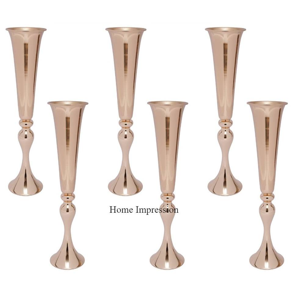 Nouveau modèle arrivée admirable Designer rose couleur trompette Vase ensemble de 6 centres de table d'affichage de fleurs pour la décoration de mariage