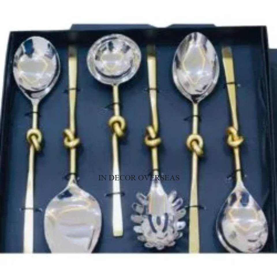 Nouveau modèle arrivée acier inoxydable argent brillant poli Unique ensemble de couverts de créateur de fantaisie avec poignée plaquée or de l'inde