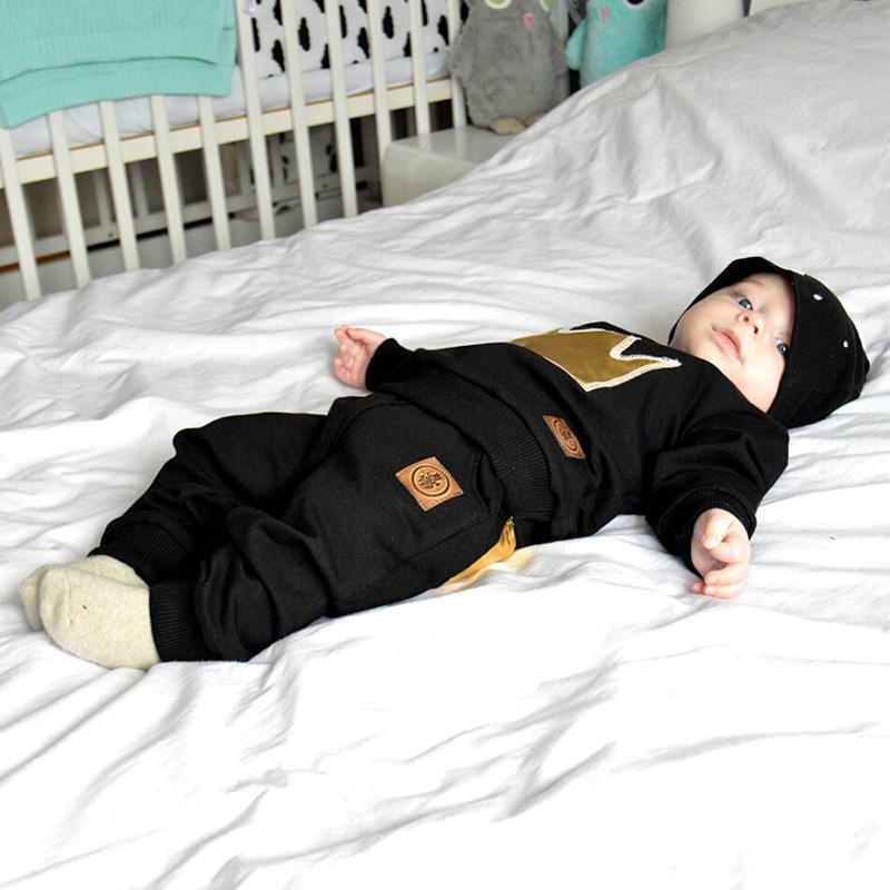 Nouvel ensemble noir pour bébé nouveau-né avec motif tendance