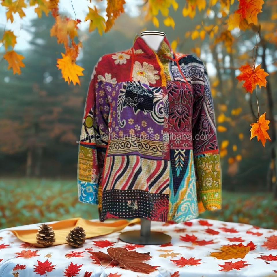 Product name:Vintage Cotton Sari Kantha Patchwork Jacket For Women