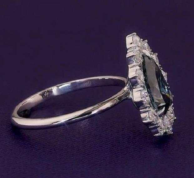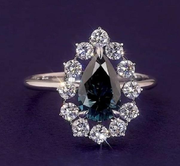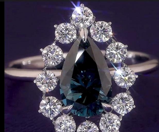 Nouvelle bague de fiançailles en diamant bleu de laboratoire taille poire, or blanc 18 carats plaqué rhodium, bijoux de luxe classiques pour femmes