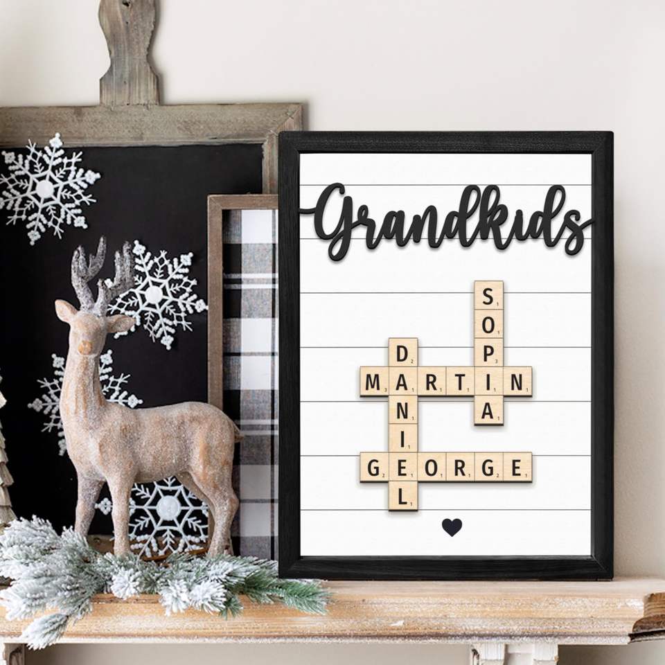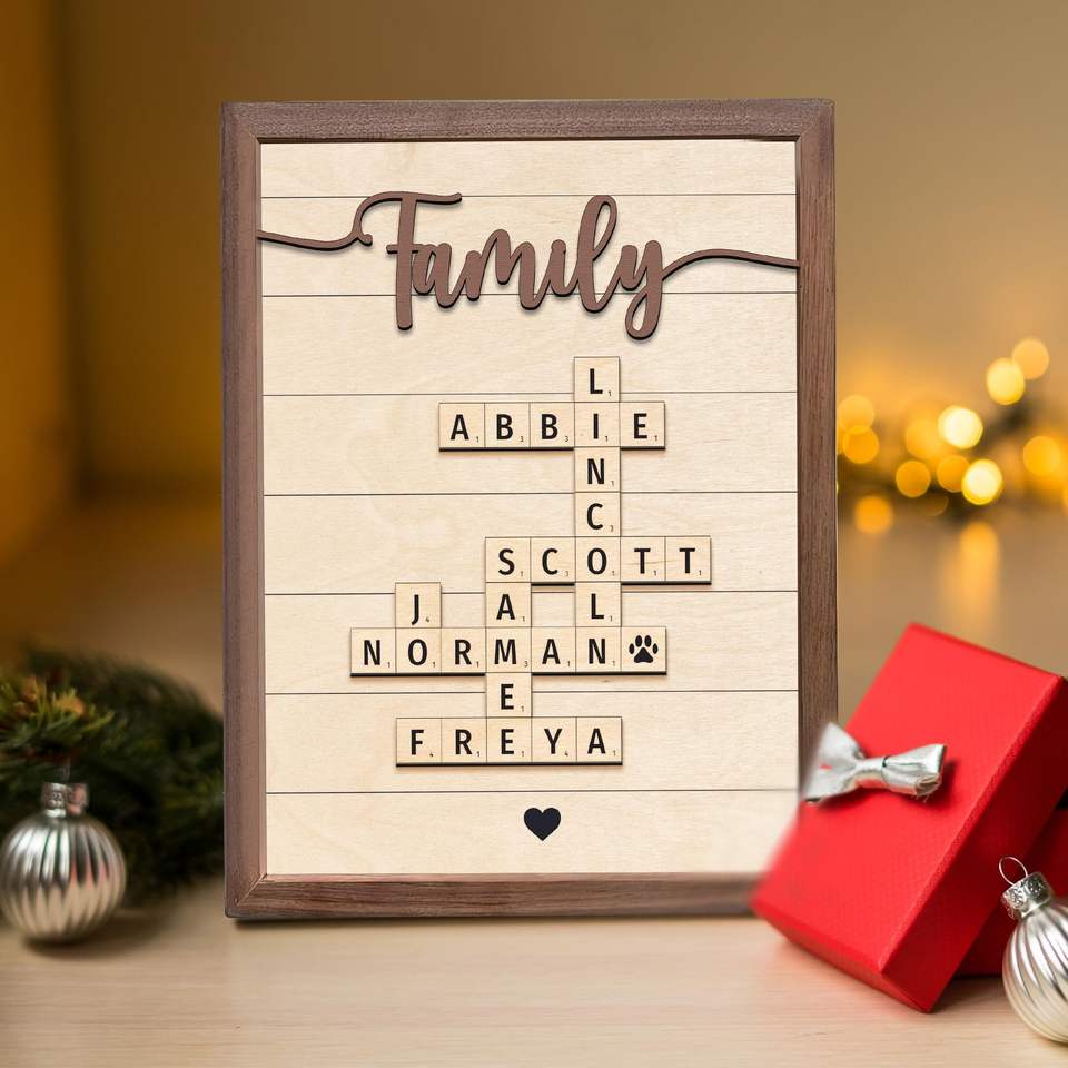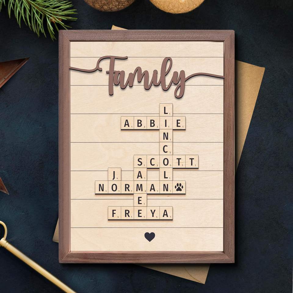Nouveau cadre de nom de famille personnalisé cadeau de la Saint-Valentin pour les amoureux mots croisés Scrabble impression lettre personnalisée impressions de carreaux