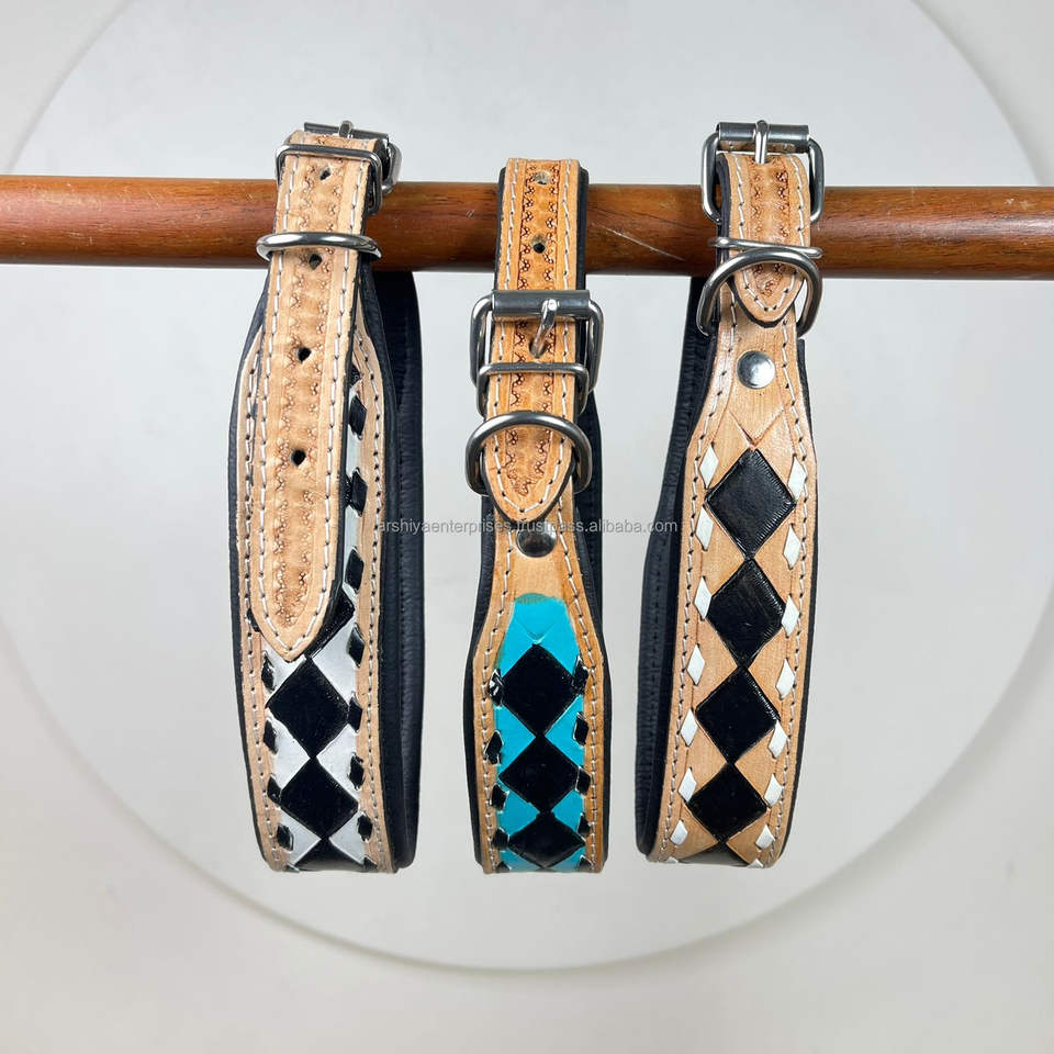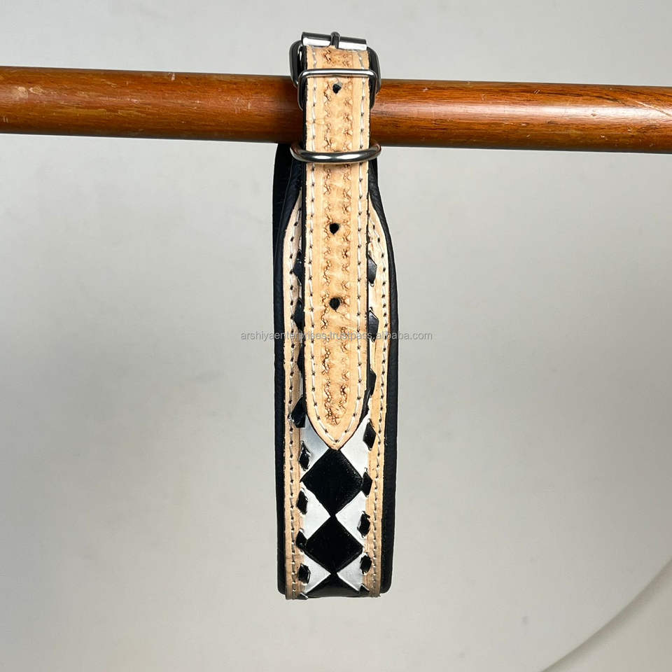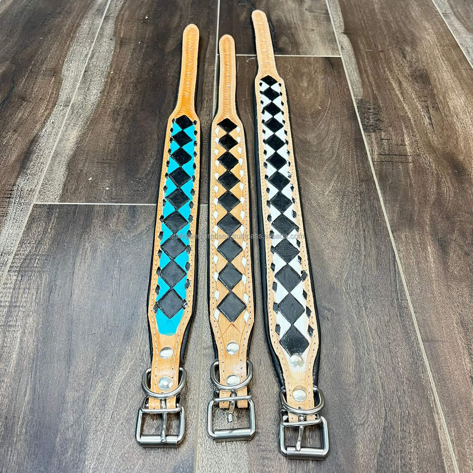 Nom du produit:Collier de chien en cuir à carreaux taillés à la main