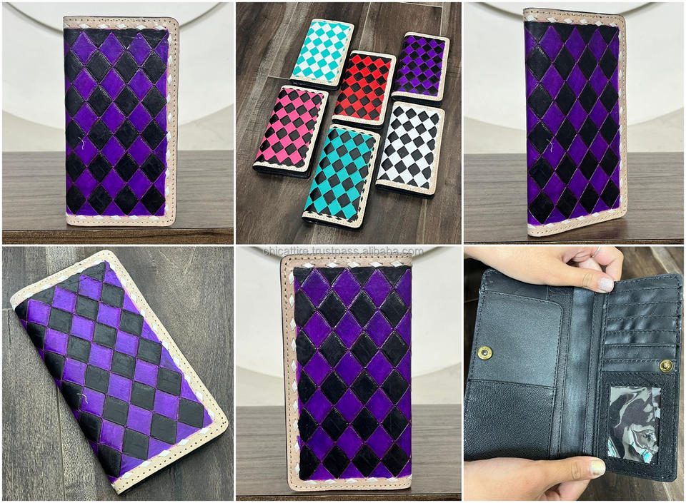 Nom du produit:Portefeuilles longs à deux volets en cuir martelé à motif damier