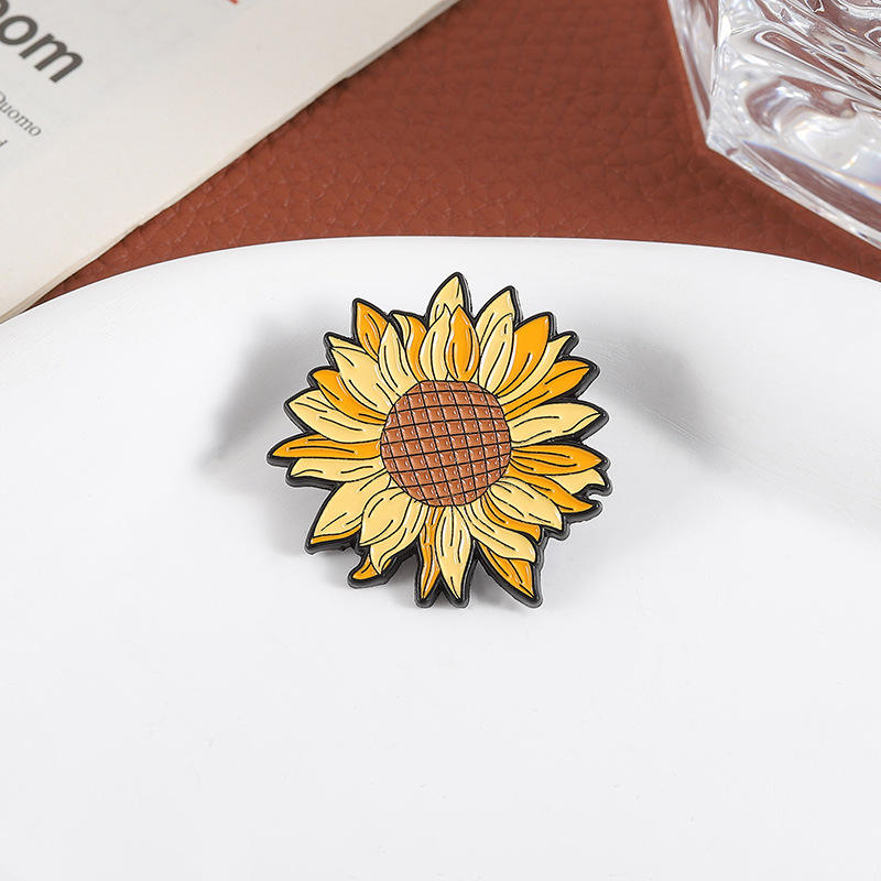 Nouvelle Broche Tournesol Personnalisée, Série Créative de Fleurs de Tournesol Jaunes en Dessin Animé, Badge en Métal pour Décoration de Vêtements
