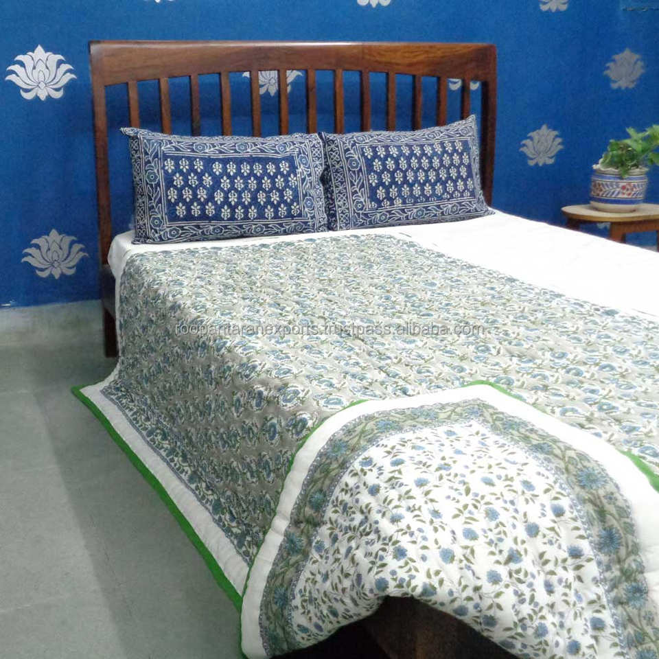 Nouvelles couettes et draps en coton biologique imprimé à la main Phool Grey Jaipur, écologiques, lavables, réversibles, à bas prix pour