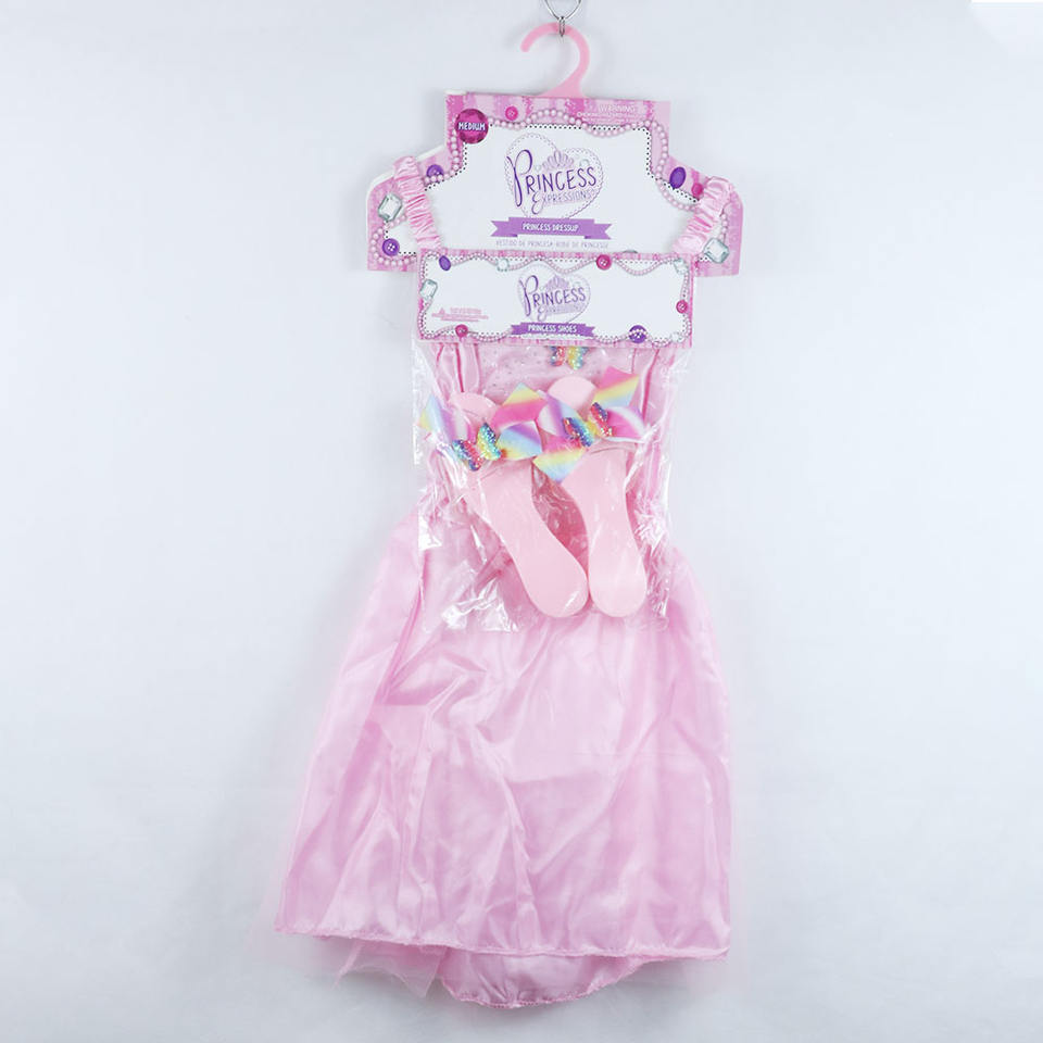 Nouvel ensemble robe de princesse rose pour filles, robe en satin et tulle avec chaussures à nœud arc-en-ciel, costume de fête pour enfants