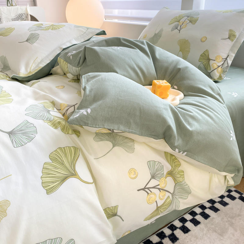 Nouvel ensemble de couette en laine d'automne avec plantes et fleurs, kit sept pièces, literie de qualité résistante à l'eau pour dortoir simple/double