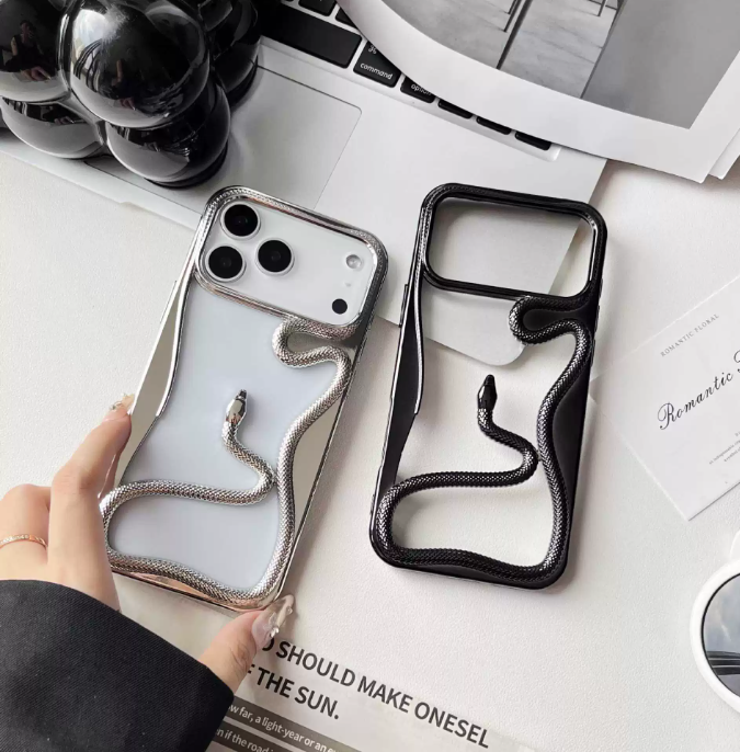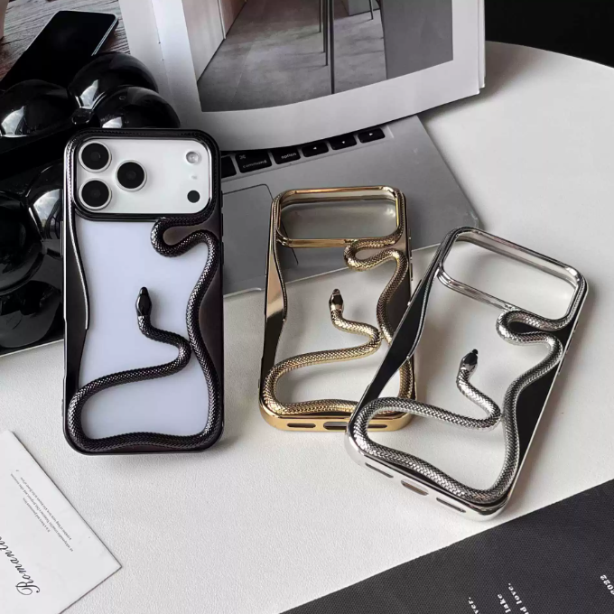 Nouveau populaire étui de téléphone portable en forme de serpent évidé anti-chute électrolytique pour IPhone 17 16 15 Pro Max 15 14 13 12 11 Pro