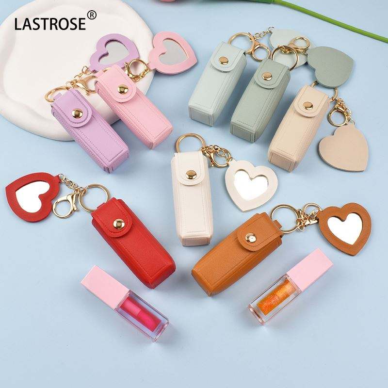 Nouvelle Pochette à Rouge à Lèvres Populaire avec Miroir de Maquillage, Porte-Gloss, Porte-Baume à Lèvres en Cuir PU avec Porte-clés