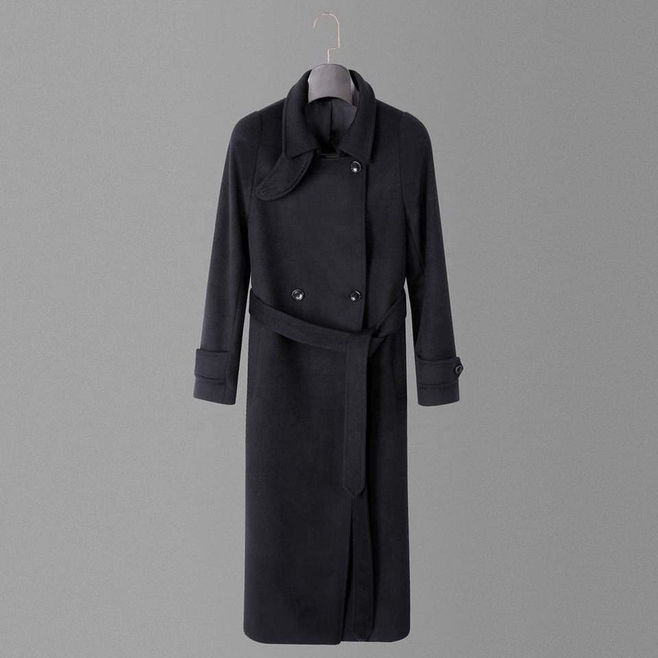 Nouveau manteau long noir pour femme, style minimaliste populaire, chaud et coupe-vent