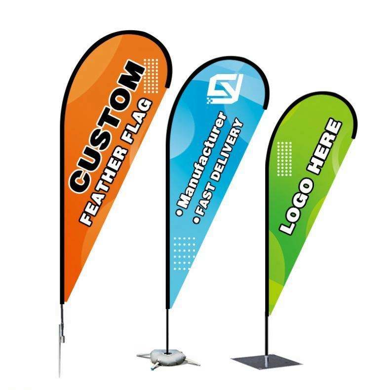 Nouveau produit populaire : Drapeaux plume personnalisés en polyester pour publicité extérieure, jardin, bord de route, et supports de bannières sur mesure