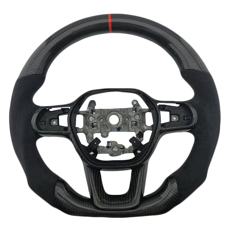Nouveau volant en fibre de carbone Alcantara rouge à rayures supérieures, compatible avec Honda Civic 11e génération