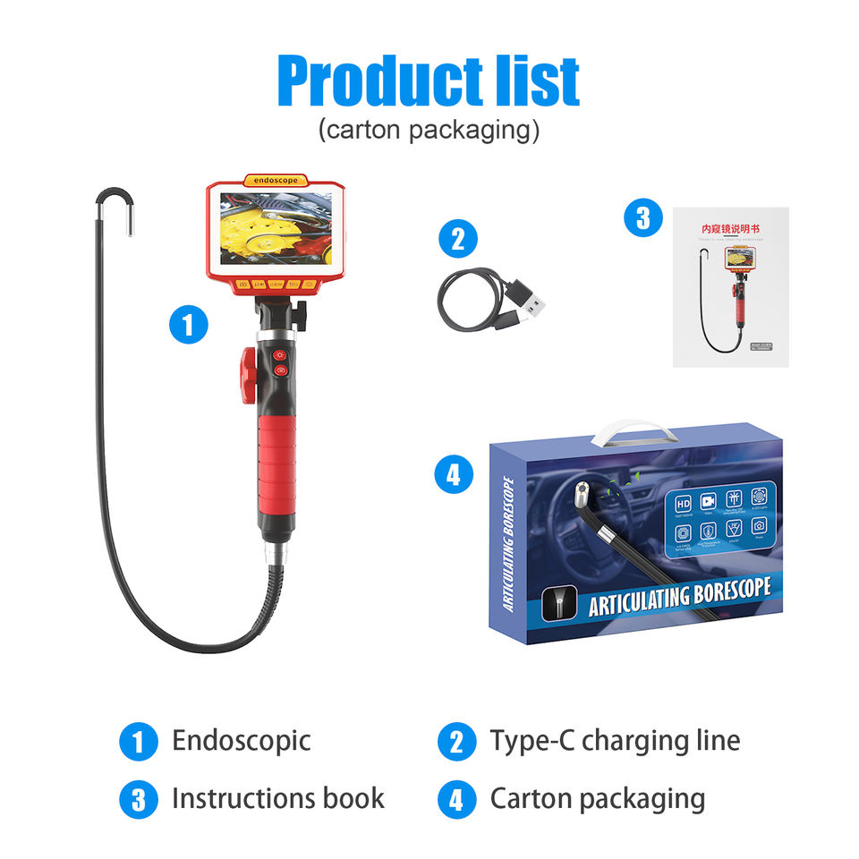 Nouvelle caméra endoscope portable 4.30 pouces 2MP vidéoscope articulé caméra d'inspection de serpent endoscope industriel