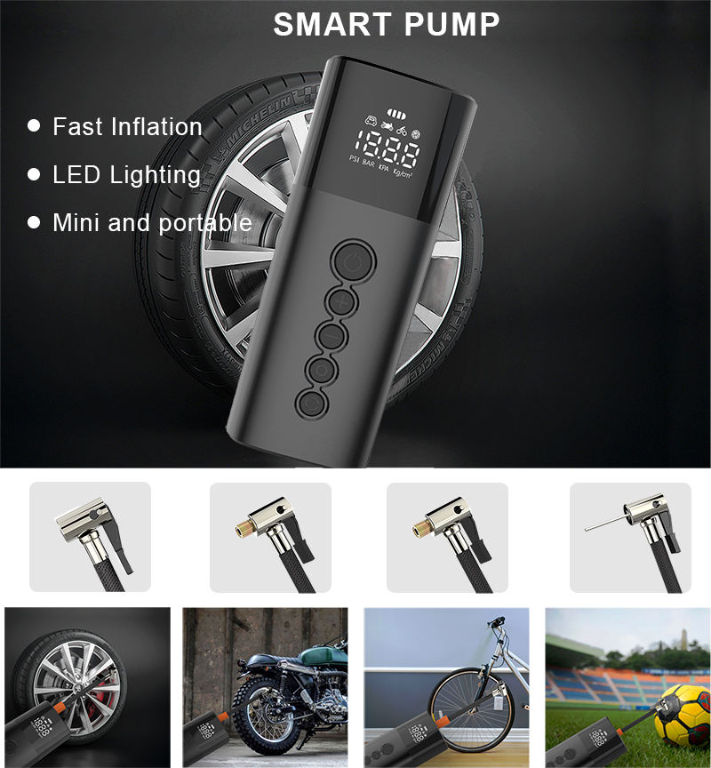 Nouvelle pompe à air électrique numérique portable mini sans fil avec lumière LED