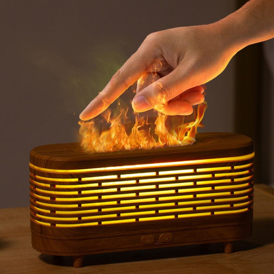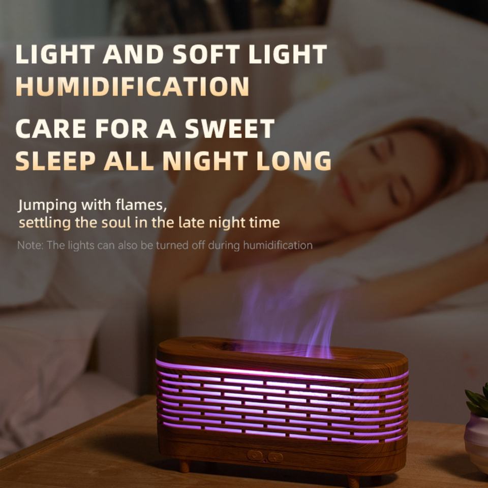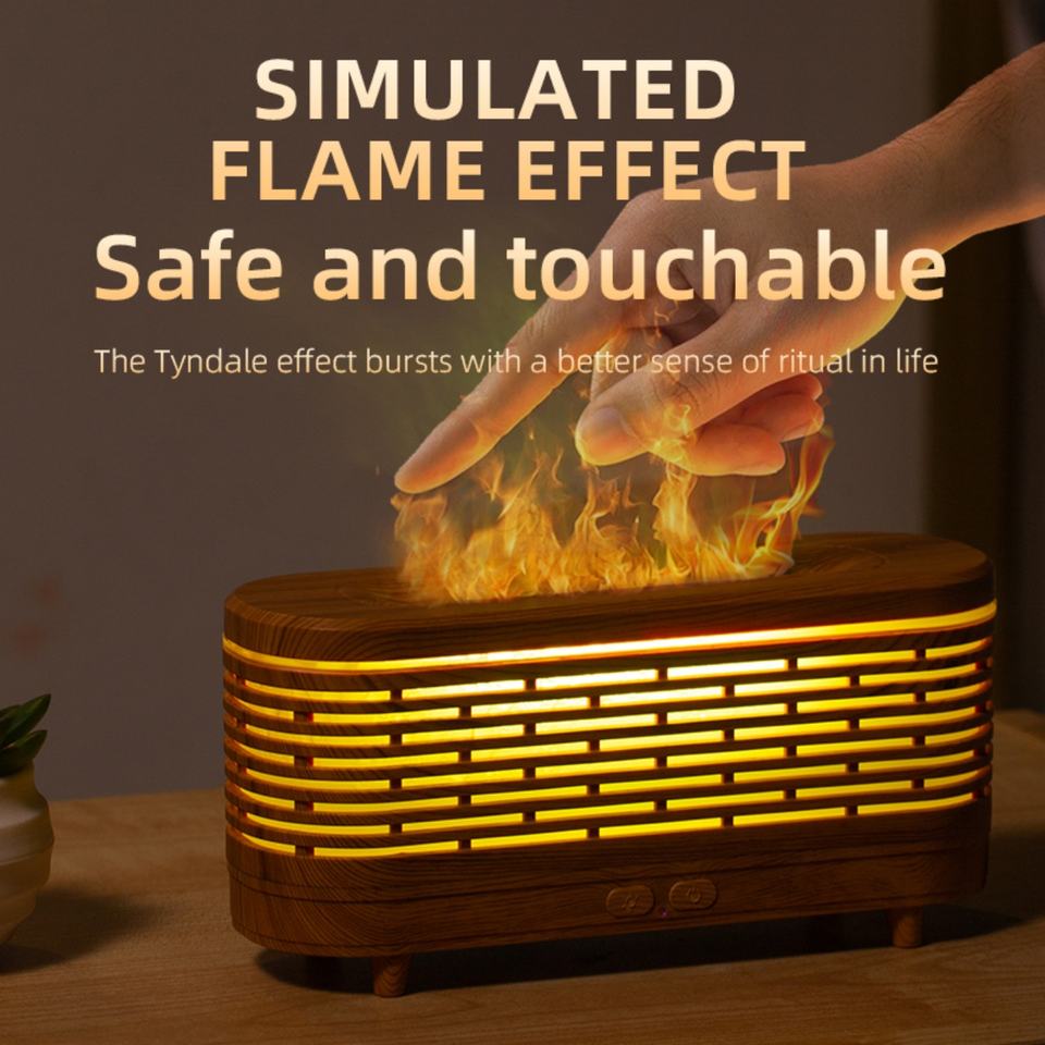 Nouveau Diffuseur d'Huiles Essentielles Électrique Portable avec Lumière LED Effet Flamme et Design Mini Grain de Bois pour Usage Domestique