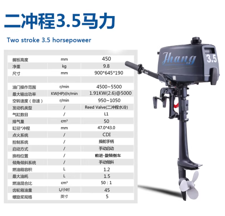 Nouveau moteur hors-bord à essence portable et léger 3,5 CV 2 temps avec poignée de commande pour petits bateaux et bateaux d'accompagnement
