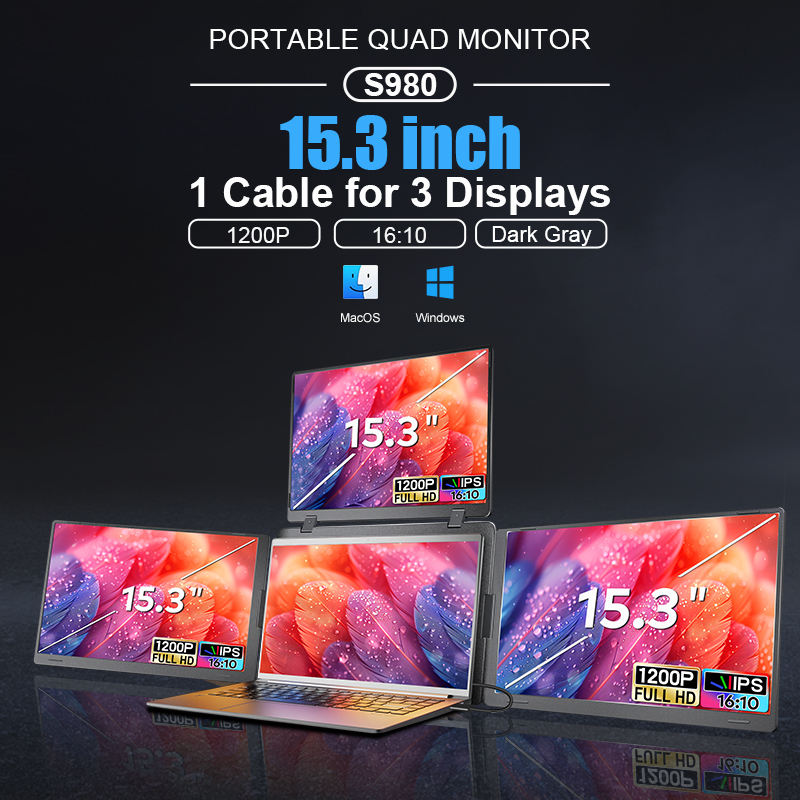 Nouvel écran portable 15,3 pouces, 1 câble pour 3 écrans, moniteur triple écran, moniteurs LCD Type-C pour ordinateur portable