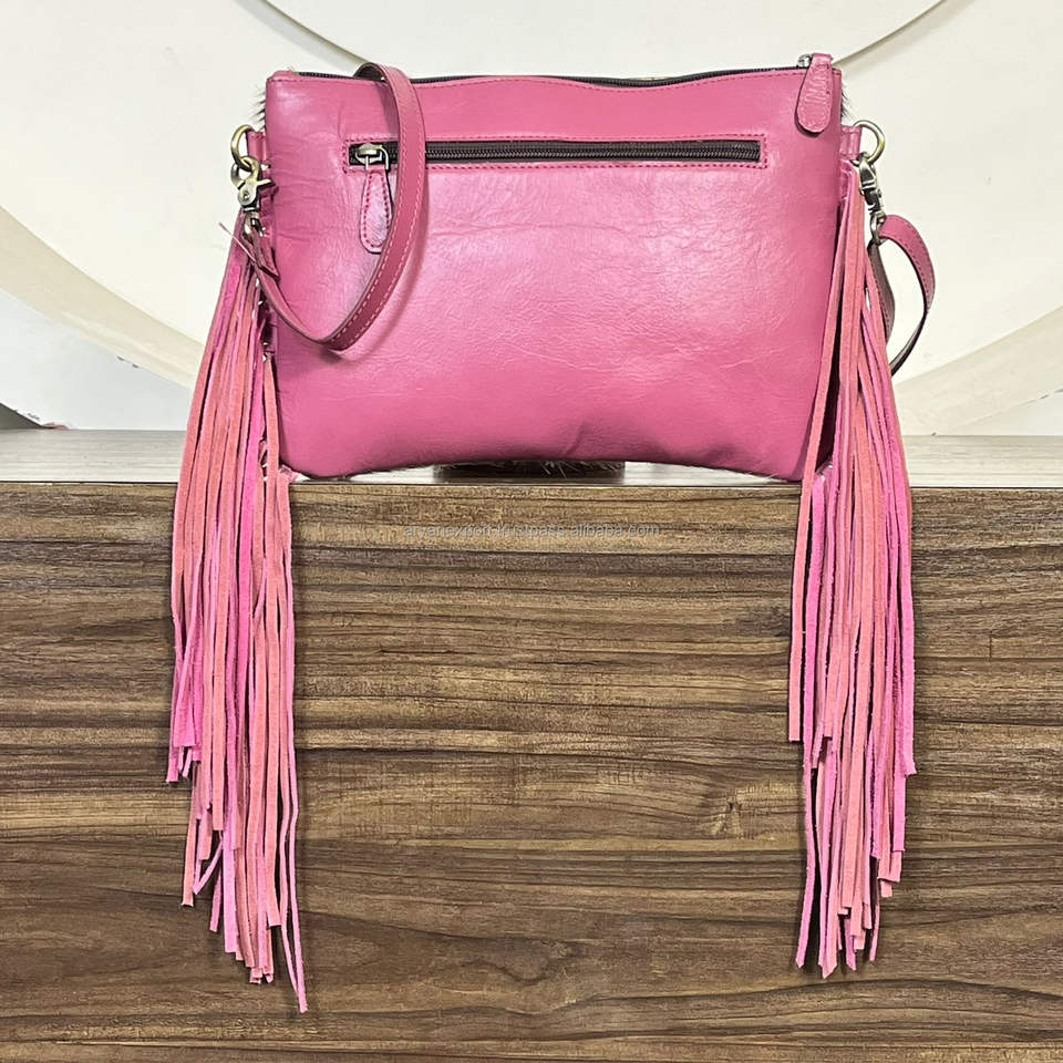 Sacs bandoulière à franges en cuir de vachette travaillé à la main