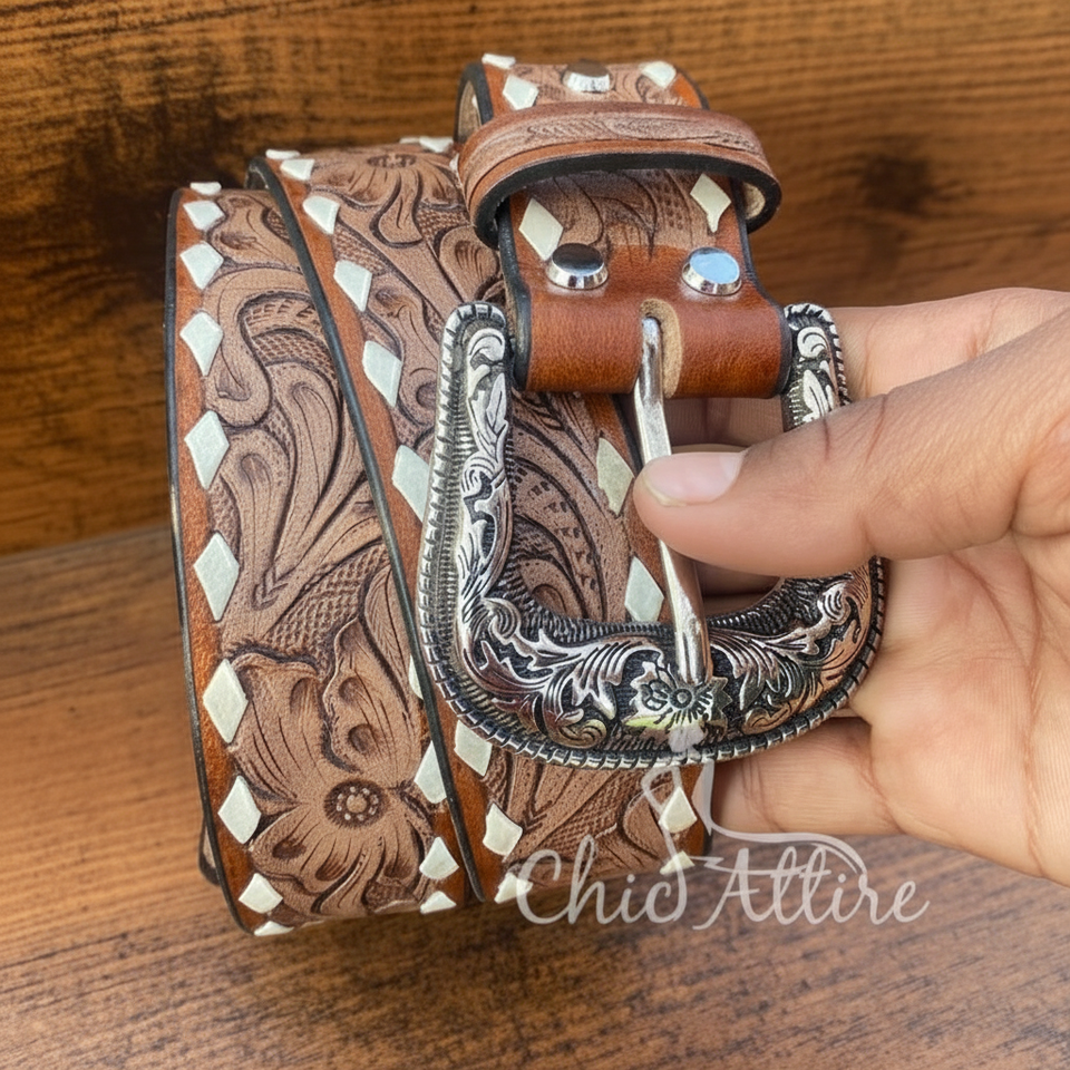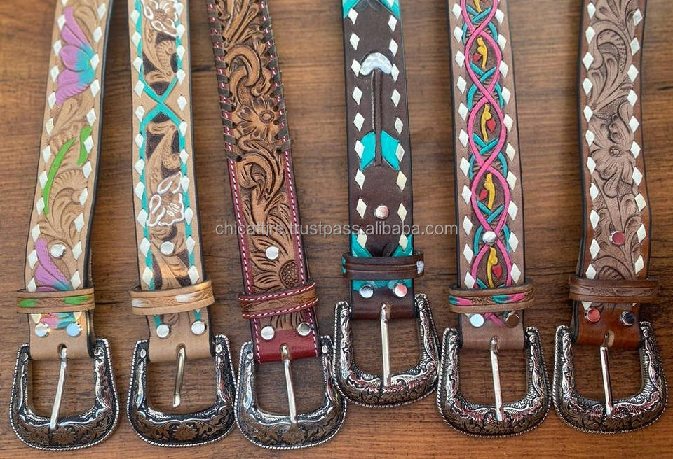 Nouvelle ceinture florale en cuir de vache occidentale sur mesure de qualité supérieure avec design usiné à la main, fournisseur de premier fabricant en Inde