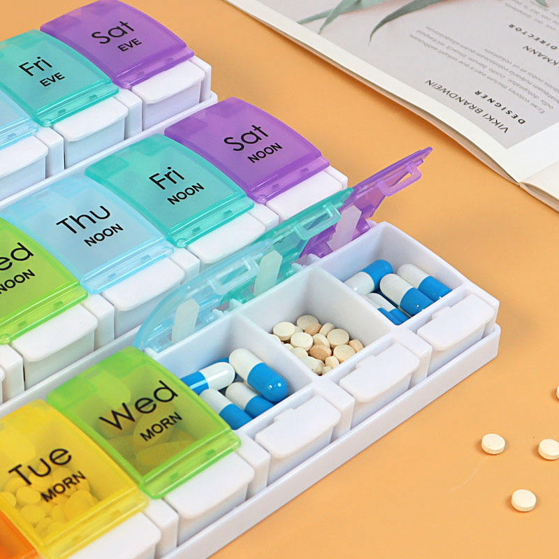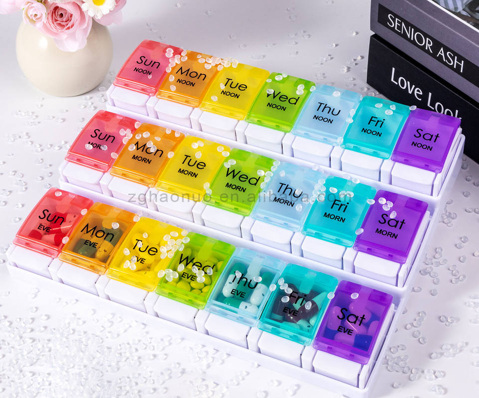 Nouvelle presse bouton poussoir grande capacité amovible chaque semaine 3 fois par jour 7 jours 21 compartiments portable pilulier boîte de rangement