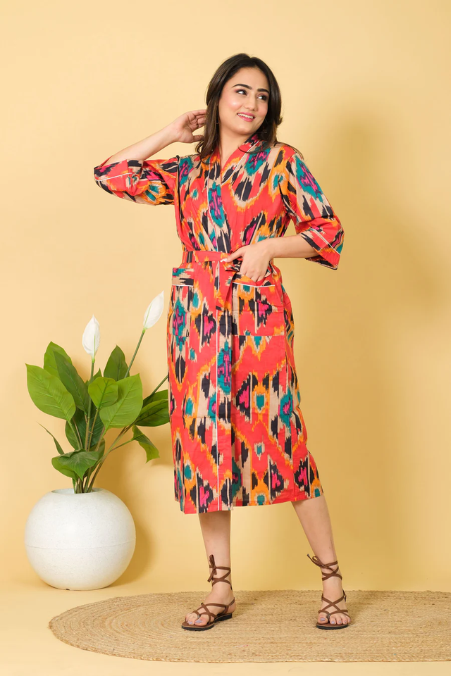 Nouveau joli coloré Ikat imprimé coton Kimono Robe Robe de chambre peignoir été Bikini couvrir coton Kimonos
