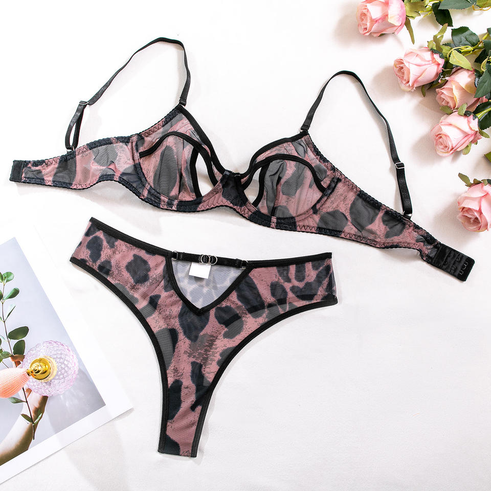Nouvel ensemble de lingerie imprimé léopard pour femme, lingerie sexy, string sexy, poitrine ouverte, luxe, confort, lingerie sexy pour femmes