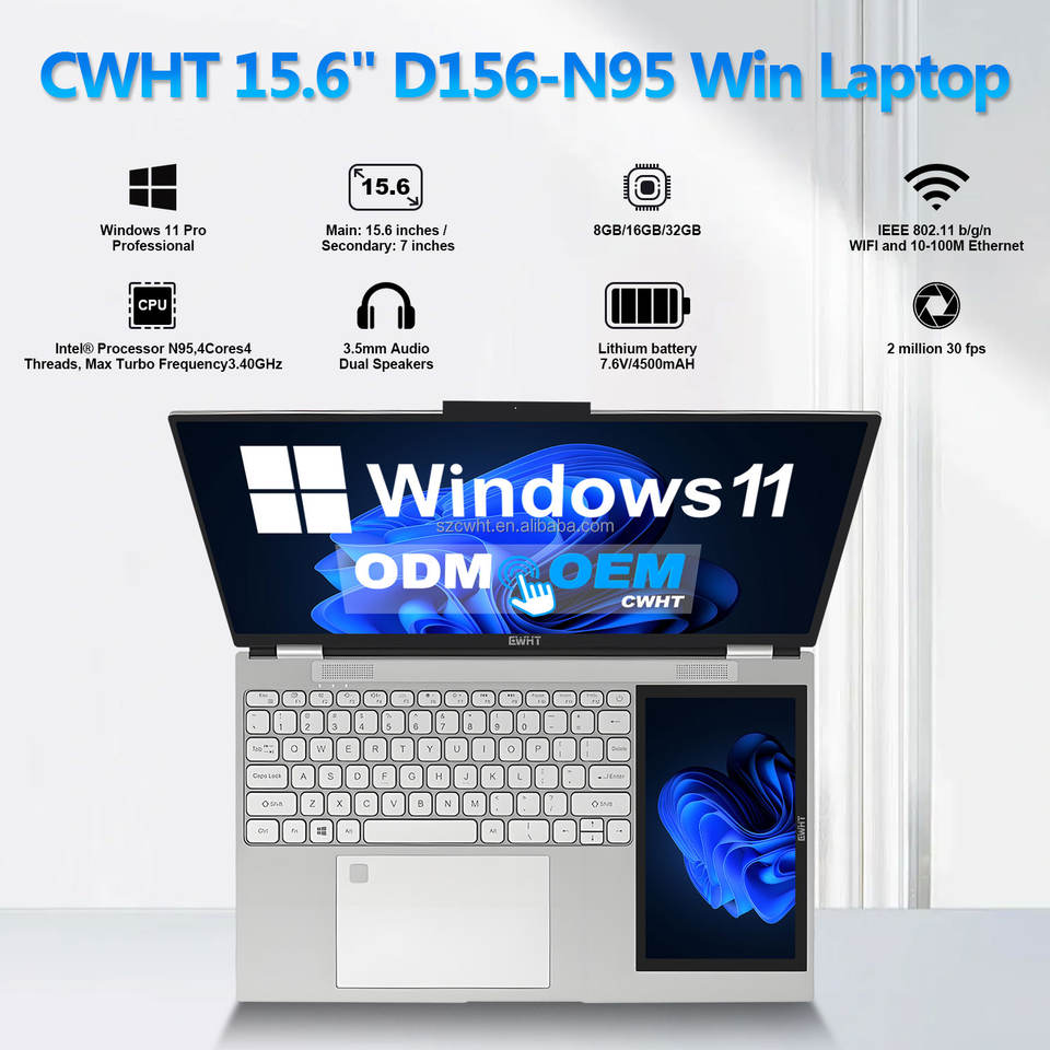 Nom du produit:Ordinateur portable 15,6" + 7" double écran In-tel N95 Win 11