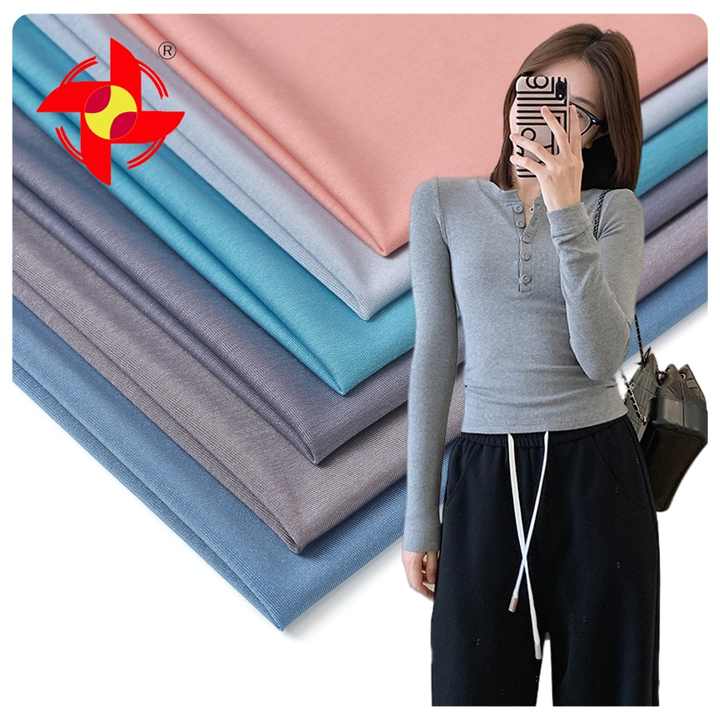 Nouveau produit 4 voies extensible 86 Nylon 14 Spandex 160gsm trame tricotée coupe sèche tissu cationique pour les femmes mode Uniqlo t-shirt
