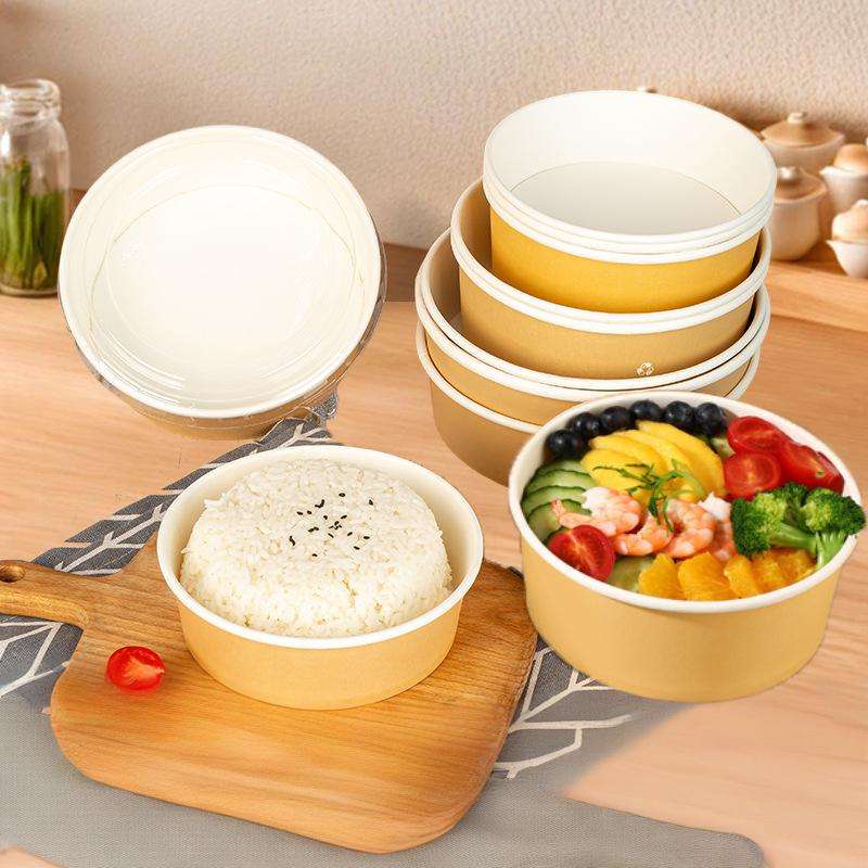Nouveau produit Bol en papier rond kraft jetable personnalisé Récipient alimentaire à emporter biodégradable