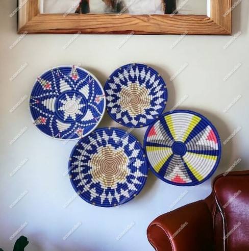 Nouveau produit décoration intérieure rotin naturel tenture murale paniers bambou rotin assiette ronde bol tissé pour décoration murale