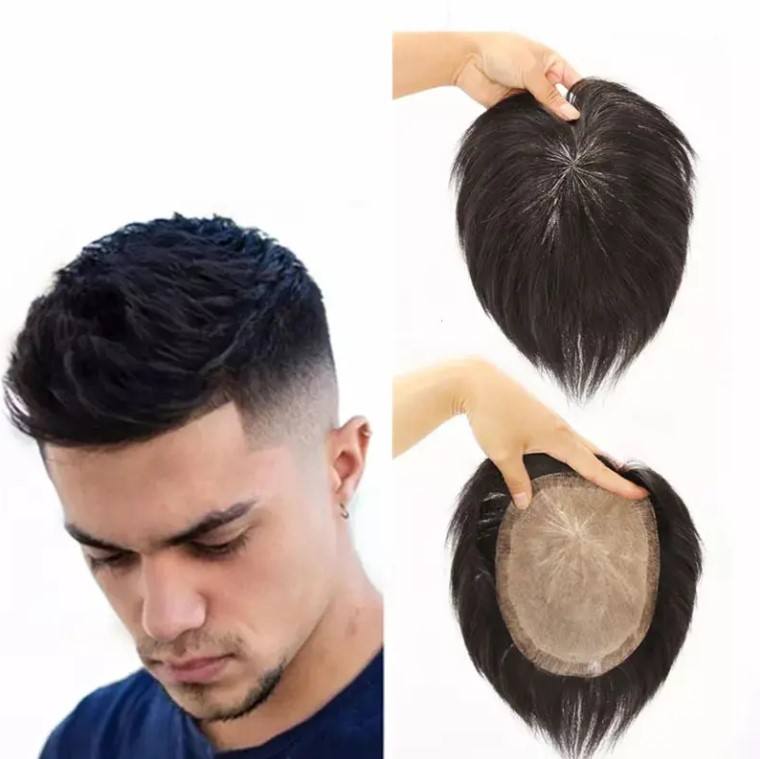 Nouveau produit : Perruques invisibles à l'aspect naturel pour hommes, toupet en cheveux humains pour couvrir les cheveux blancs, postiche pour hommes