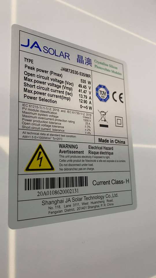 Item name:JA Solar 535w