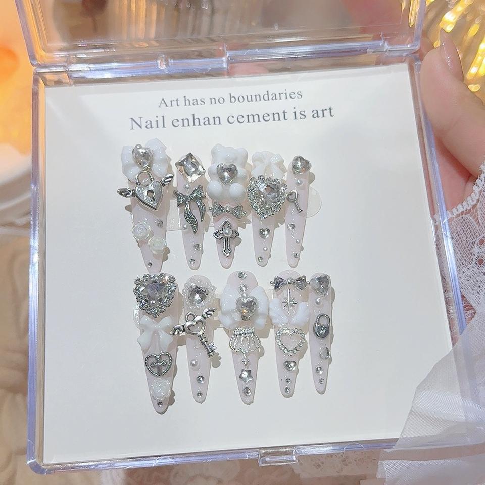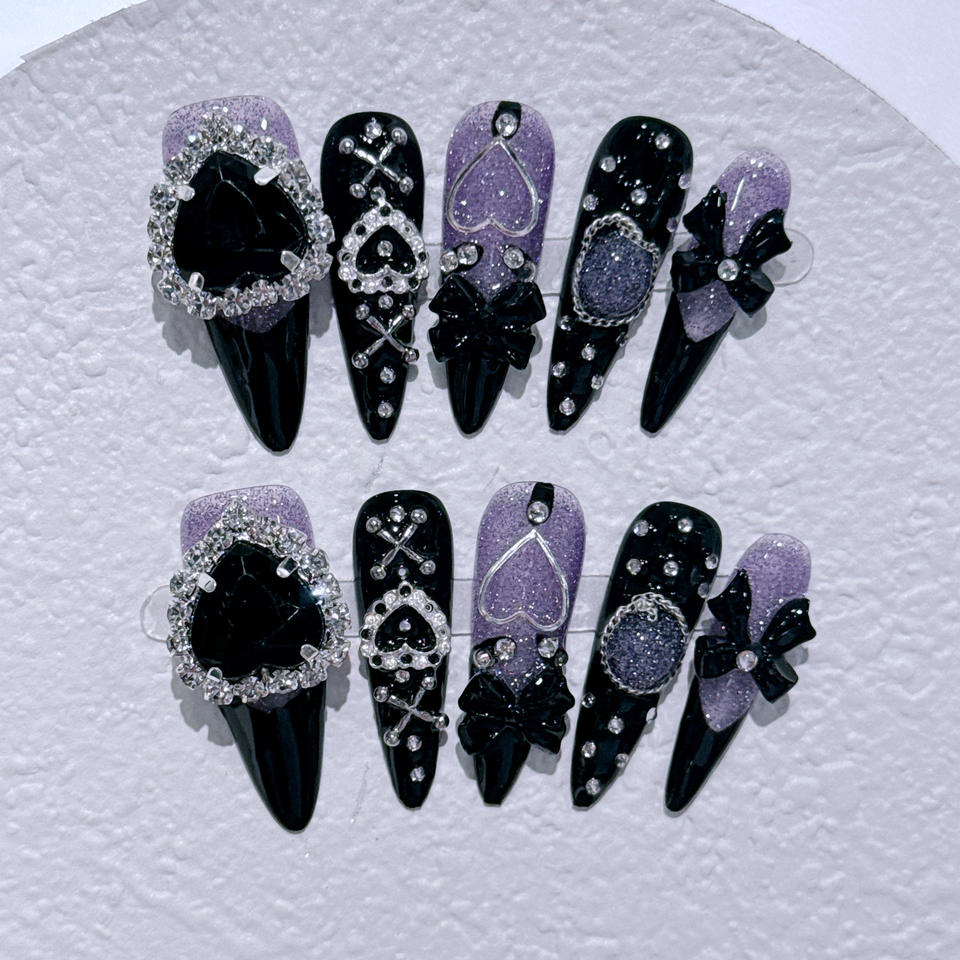 Nouveau produit lancé - Série de couleurs rose et noir, chaîne douce et cool pour les filles cool européennes et américaines, ongles portables faits à la main