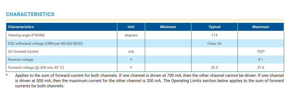 Flux lumineux @ 300mA @ 85 ℃:956-1385lm