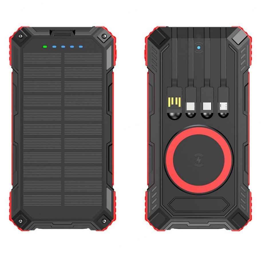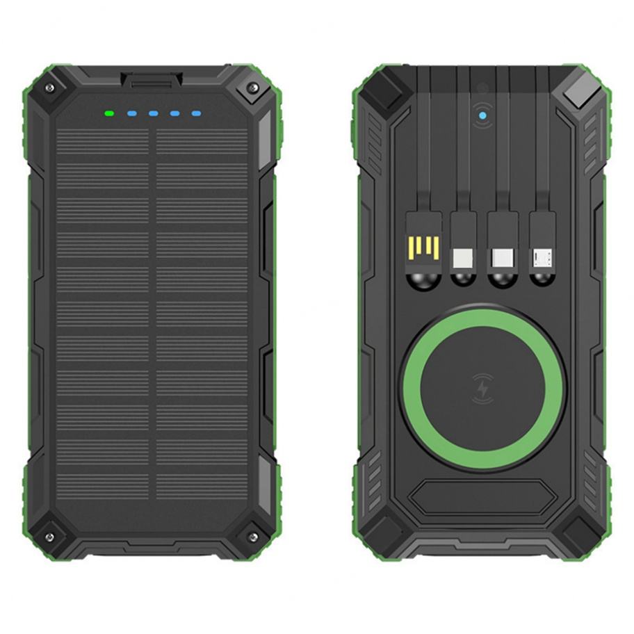 Nouveau produit : Banque d'alimentation solaire sans fil avec câble intégré, 20000 mAh, chargeur portable solaire avec lampe torche LED