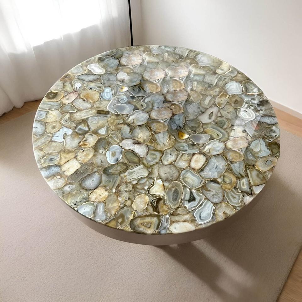 Nouvelle production de plateau de table en agate, design exclusif et antique, forme ronde, finition de haute qualité, poli, fabriqué en Inde