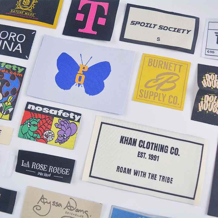 Nouveaux produits 2025 Designer Logo personnalisé Tag Swing Tickets Étiquettes de vêtements tissés au cou et marques célèbres pour vêtements